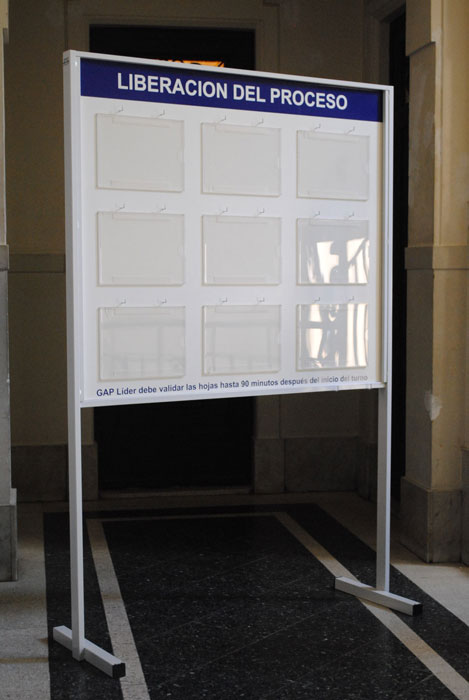 Cartelera de chapa pintada en epoxi. Soportes de caño.